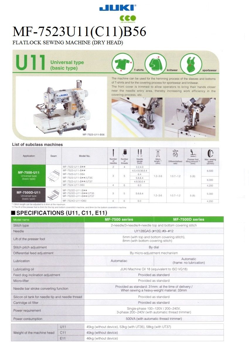 Juki Sewing Machines are used in Knit, Woven, Leather, Jute & others.