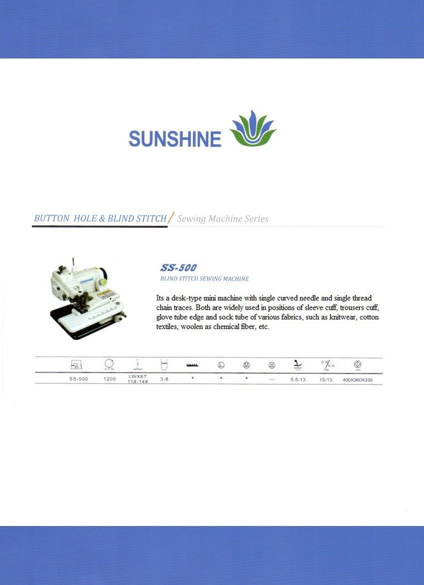 Sunshine brand covers Lockstitch, Overlock, Interlock, Chainstitch, Handstitch, Bartacking, Buttonhole, Buttonattaching, etc, With manufacturing of Garments, Shoes, Trunks, Leathers and Caps.